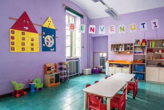 Giardino grande e sicuro classi ampie e colorate, con arredamento a misura di bambino